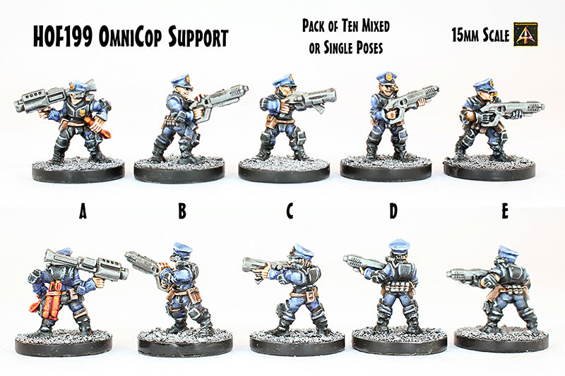 This code is supplied unpainted and without bases (shown on 20mm round bases). These miniatures go excellently with all other HOF codes and the rest of the OmniCops.