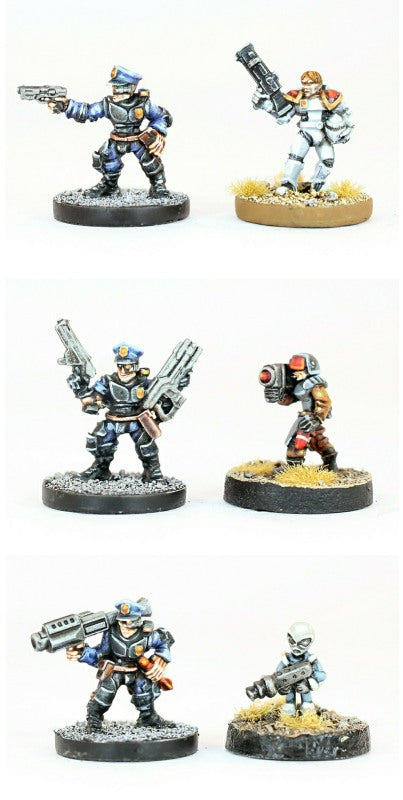 OmniCops: Mean streets must be policed! Gangs, corporates and anyone else who seeks to harm the citizens. In armoured uniforms and carrying an array of weapon such as high caliber pistols, rapid fire rifles, launchers and mag-accel rifles. The first line of defence in a dangerous future.