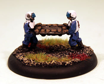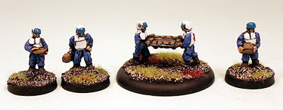 10 Miniatures. This pack contains eleven pieces, that is ten 15mm scale metal miniatures plus the grav stretcher. Poses include three different medics along with two bearers carrying an anti-gravity stretcher. Poses are taken randomly but a fair mix is given, the pack contains only one set of bearers and stretcher. The Human Medical Team is a generic set suitable for any near future or other wargame system. Add them to your forces to administer aid today!