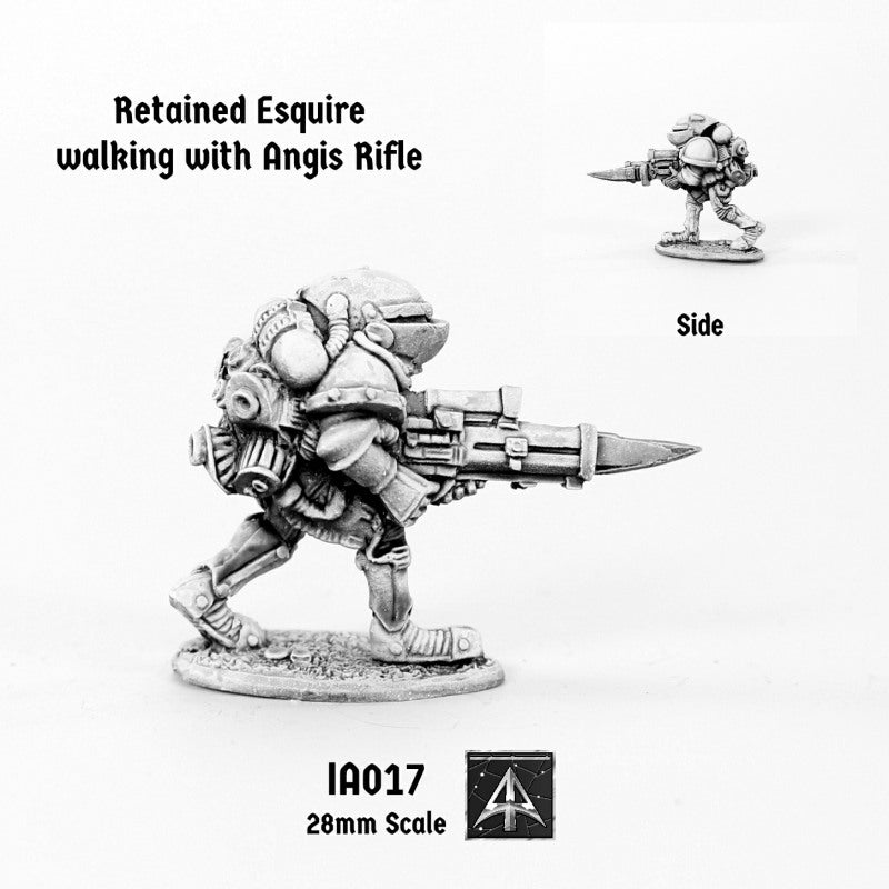 Retained Knight in Alwite Powered Armour. Walking with Angis 12.5mm AP Rifle.