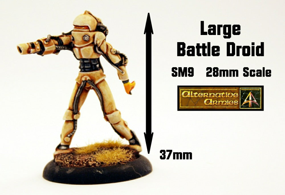 One metal miniature. Droid with energy cannon and flamer standing approx 37mm tall.