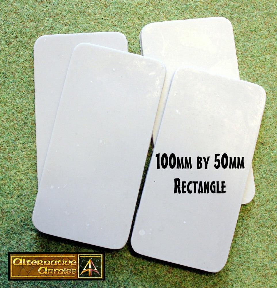 This pack contains four bases suitable for use with huge creatures, big vehicles or as large element bases. Bases are made of high quality grey tone resin with rounded edges and 3mm thick.