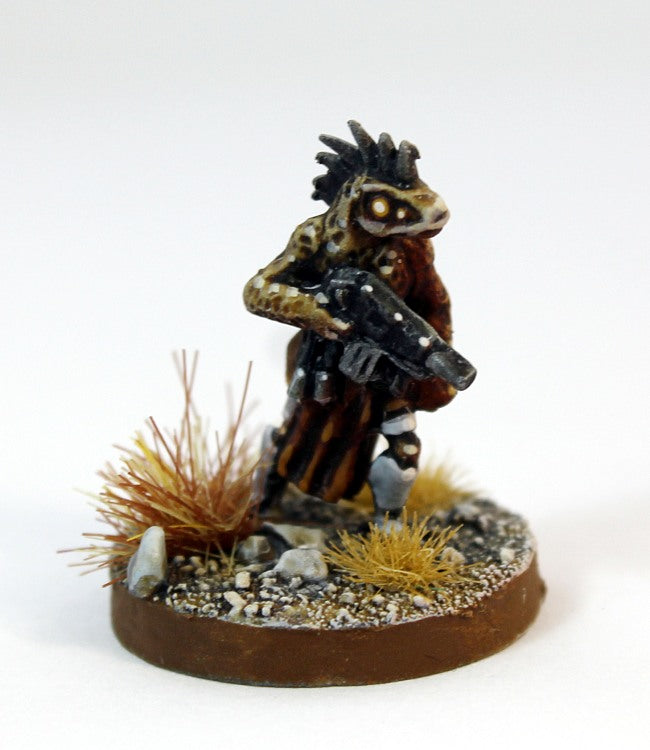 "The Ikwen are one side of an asymmetric war against a higher tech, invading enemy. They fight in a less organized, militia style, utilizing acquired weapons, not of their of own manufacture."