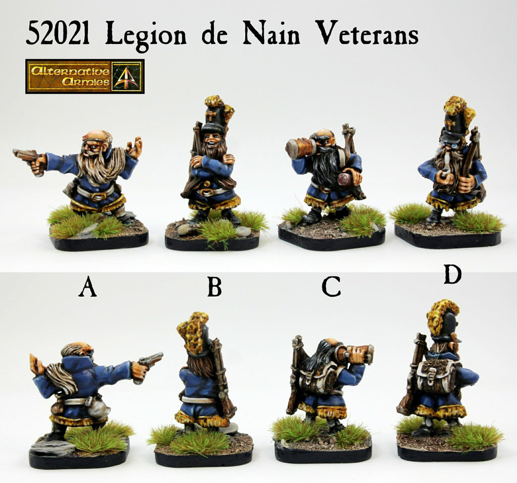 This pack contains four different 28mm scale metal Dwarves which are at home anywhere in the Legion and ideal to mix into your sections and units. Choose from the pack or select a pose from the pack (A to D). All are dressed in legion uniform.
