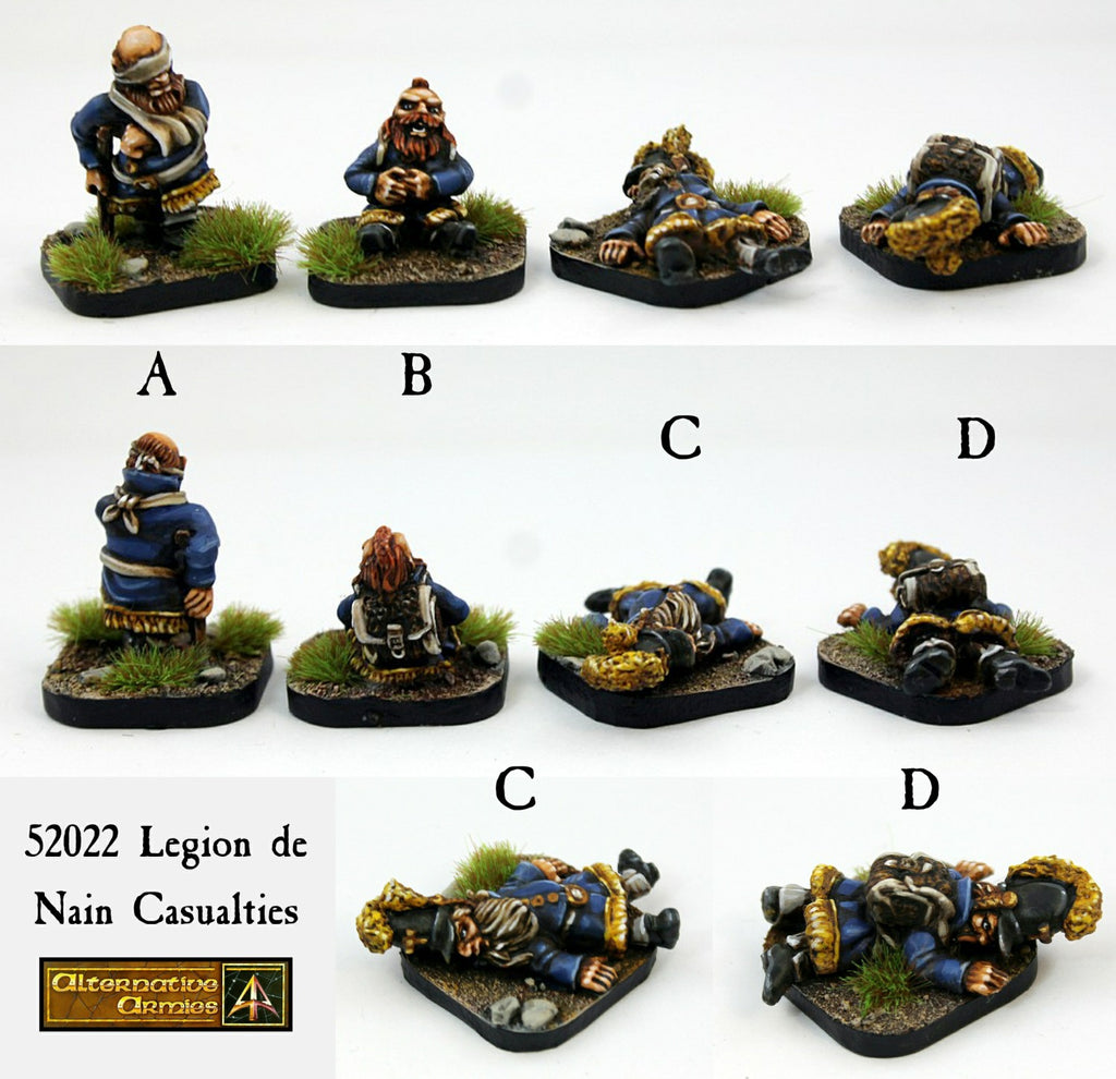 From across the tiny states of the Confederation Dwarf regiments are raised armed with Dwarf MkII Muskets and classed as Infantry. Place these casualties in your games.