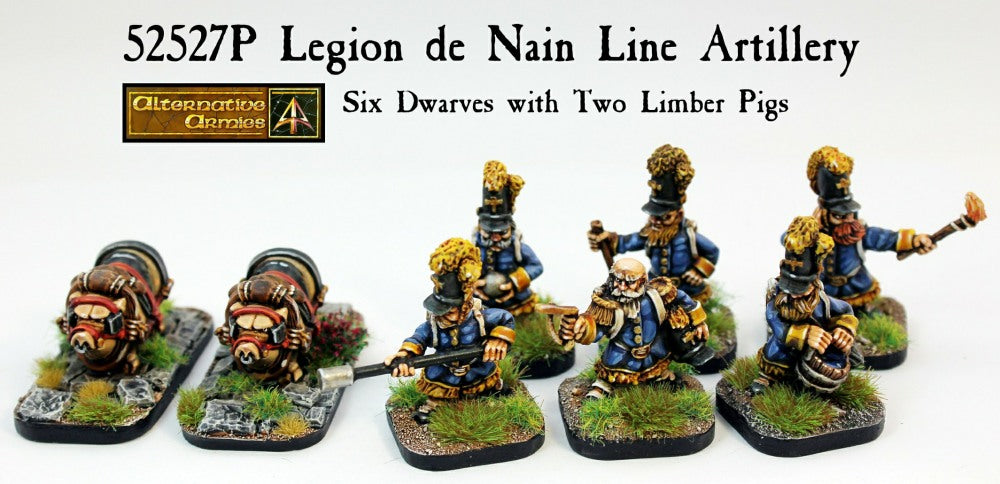 The Beir Wars are upon us and artillery is king! Each of these Dwarves is a personality in its own right and comes with limber beasts. Use with any cannon or mortar. See our BLOG for articles on the Legion.