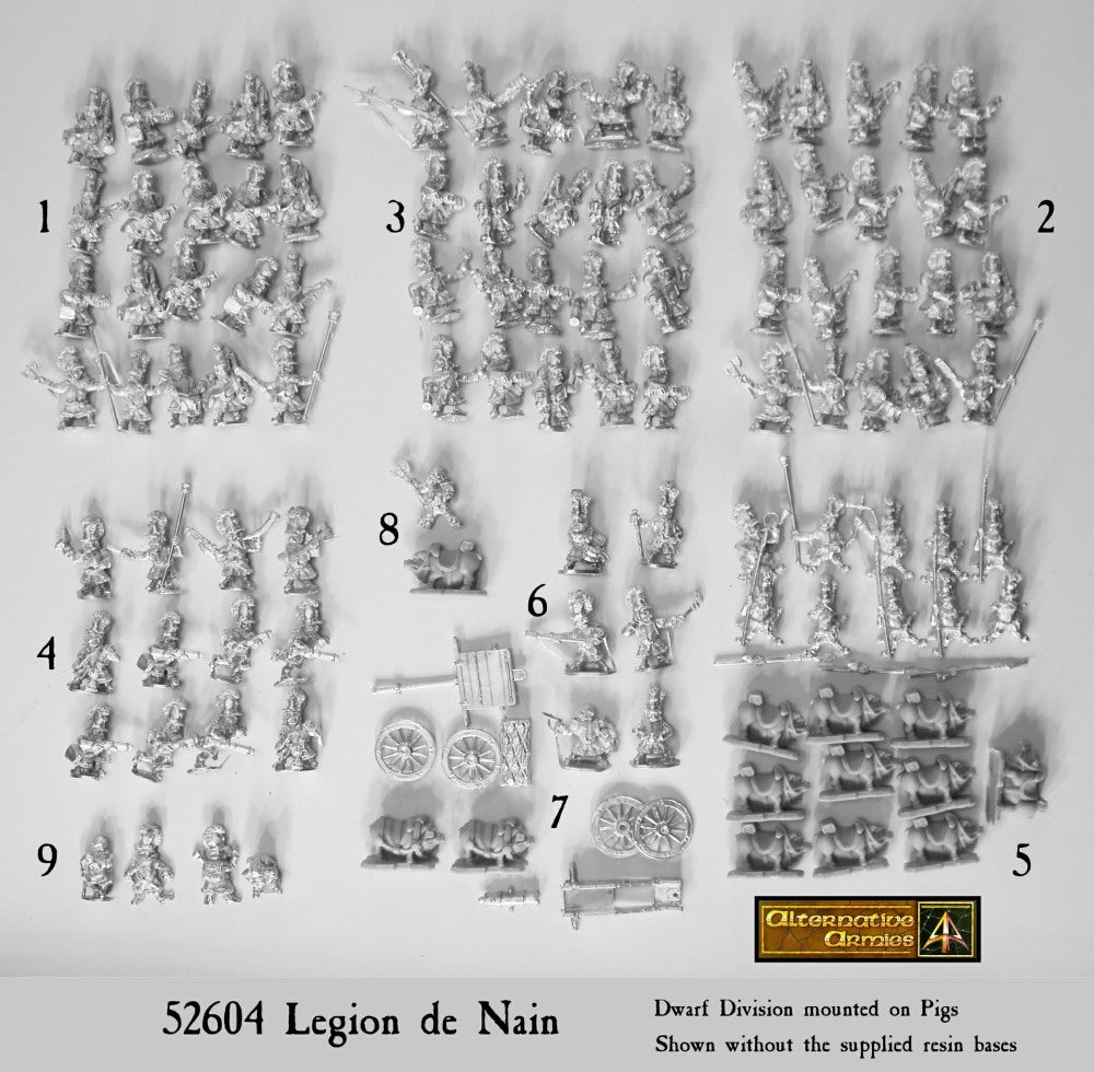 Artillery:1 Unit of 6 Legion de Nain Dwarf Artillery Crew includes 2 Limber Pigs (52527P)