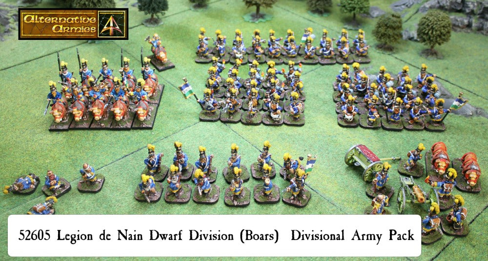 A Dwarf Division of the Legion formed from the states of the Confederation ready to fight for the Emperor Mordred. Riding on Boars. Players of Slaughterloo or those wishing to make a saving to get a big collection in one go will find excellence here.