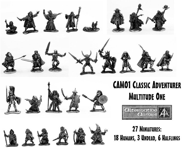 The Multitude is 27 miniatures. (18 Human Characters, 3 Undead Characters, 6 Halfling Characters. Contains packs CA1,2,3,4,6,7 and you save 10% off single pack prices).