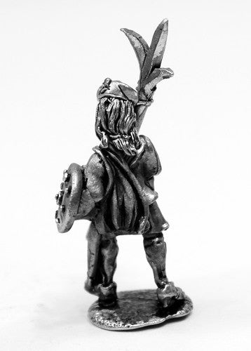 A 28mm scale white metal miniature with three bladed polearm.