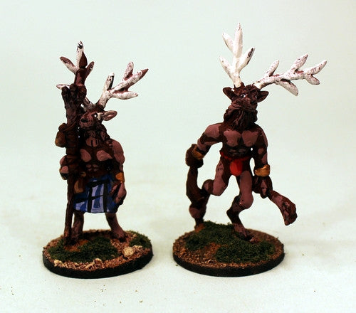 This pack contains two 28mm miniatures from the Erin range in different poses as pictured. Antlers are provided and can be attached in any chosen arrangement.