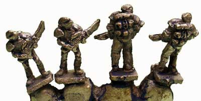 Power Armour Human Infantry. 4 miniatures on a sprue.From left to right in image;Trooper with Rifles