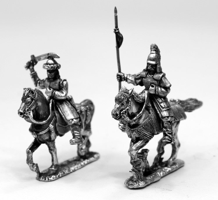 This code contains two different 28mm metal miniatures composed of a rider and a horse. We supply a random horse of those shown with each rider unless you contact us and request a certain mount. Poses in this code are as follows: