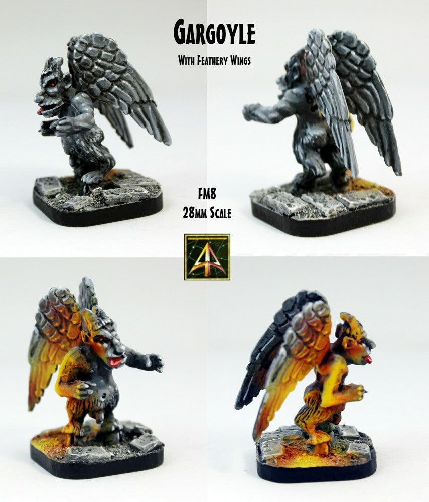 A Gargoyle of stone with wings of feathers which stands 30mm to the top of the wings.