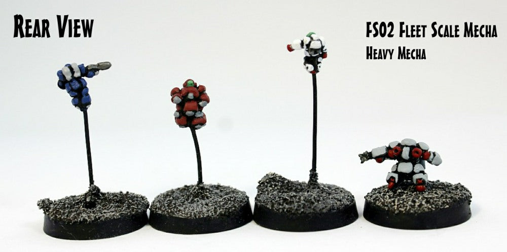 This code is a metal set of four different mecha. Each Fleet Scale Mecha is just under 6mm tall and is posed to be 'in flight'.