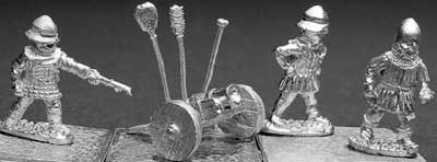 Bombard with Three Crew. This pack contains one bombard with two wheels, a set of rammers and three different crew. Suitable for use with DBA or DBM or any other 15mm scale Medieval wargame rule system.