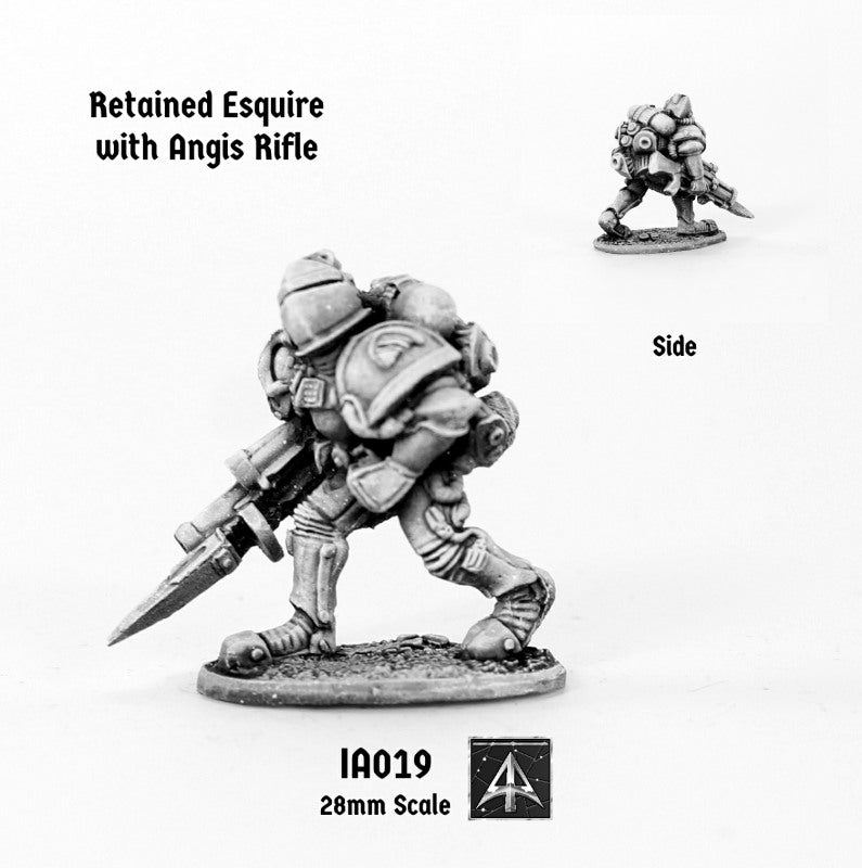 Retained Knight in Alwite Powered Armour. Angis 12.5mm AP Rifle lowered.