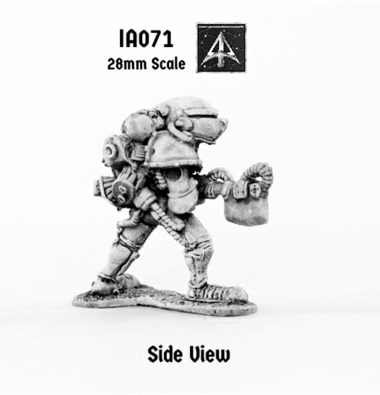Useful in any 28mm scale science fiction game system. Actual height is 30mm from sole of foot to top of miniature.