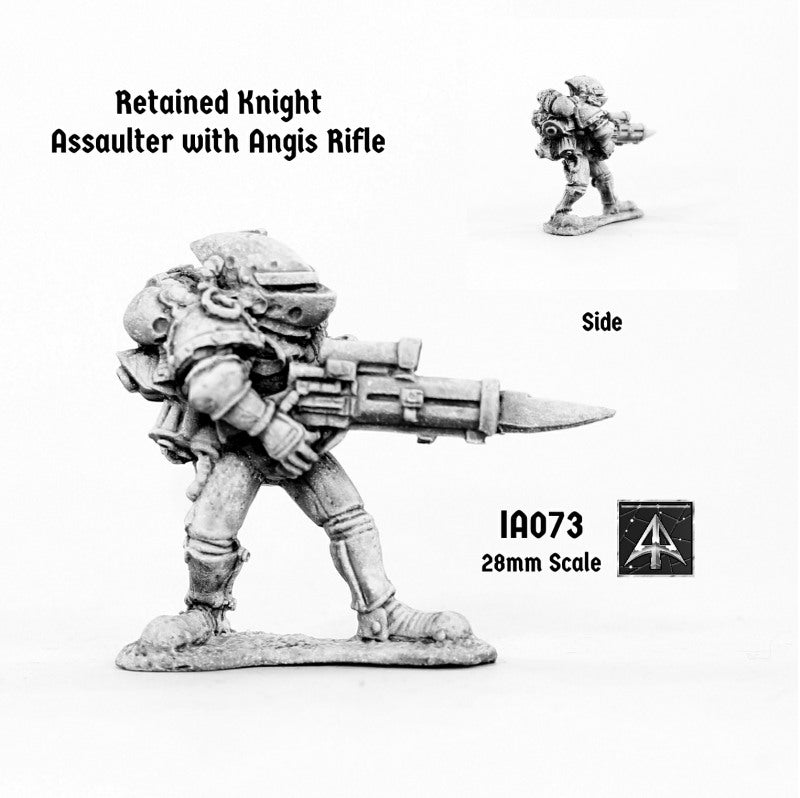 Retained Knight in Alwite Powered Armour.  Battle Damaged Armour and Angis Rifle.