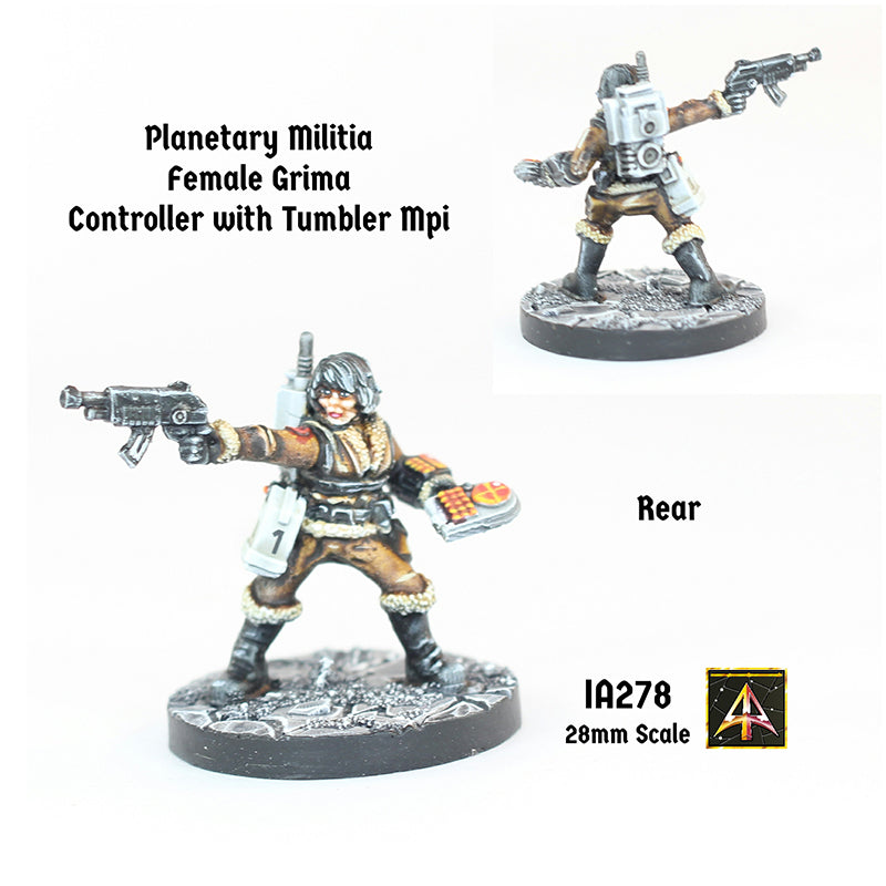 Female PM Trooper in MKIII Aketon Armour with Tumbler Mpi. Gives orders to Grima Robots.