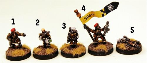 The Planetary Militia operate in Platoons (22), Squads (10) and Fire-Team's (4-5). This is 1st Platoon Command which is five special poses. PM Troopers are the home raised force to defend worlds, colonies or settlements. Command. Great for skirmish level games or combining with other codes for bigger formations and battles.