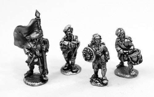 This pack contains four white metal 28mm miniatures. Bonnie Prince Charlie, a Jacobite officer, Jacobite drummer and Jacobite standard bearer. Single miniature codes J100, J101, J103 and J104. Command for your forces.