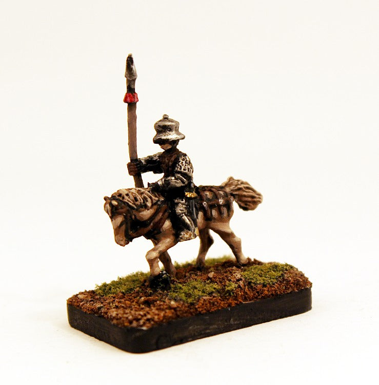 One Metal Miniature from the Medus range (one piece rider and horse).  Shown on a 15mm by 30mm base from our ranges. This code is supplied unassembled and unpainted.