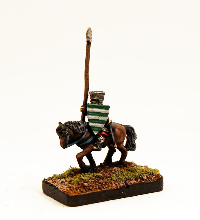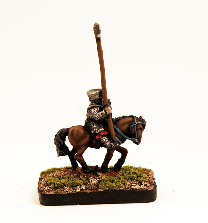 One Metal Miniature from the Medus range (one piece rider and horse).  Shown on a 15mm by 30mm base from our ranges. This code is supplied unassembled and unpainted.