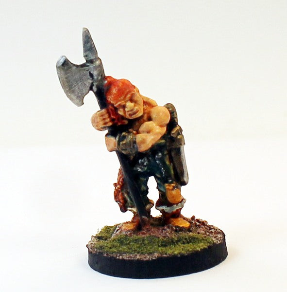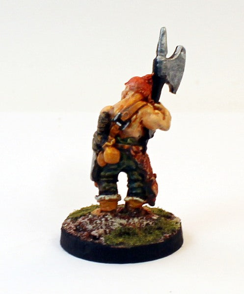 A classic 28mm scale Asgard Human Barbarian of the Wilds. A Jez Goodwin miniature painted to a high tabletop standard for use in Fantasy Gaming .  Add to your army or collection.
