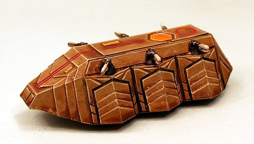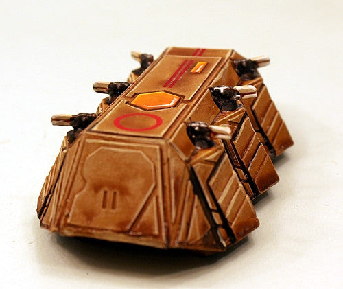 This pack contains all the parts needed to make THREE 15mm scale Space Raptor Sirrus class armoured personnel carrier (APC). This anti-gravity propulsion vehicle requires some assembly and has six separate weapons included.